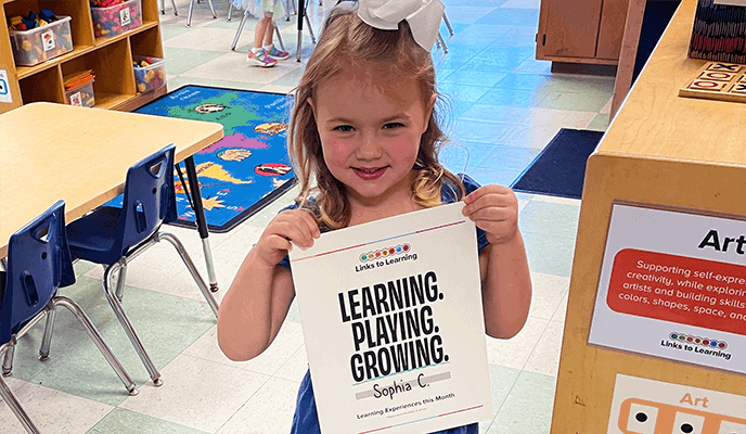 Through our Links 2 Home app, you will receive a photo of your child each day and see how the activity connects to one of our Links to Learning skills. You will also be kept informed of your child’s meals, naps and toileting. Families can also send notes to their child’s teacher and receive important updates from the school.